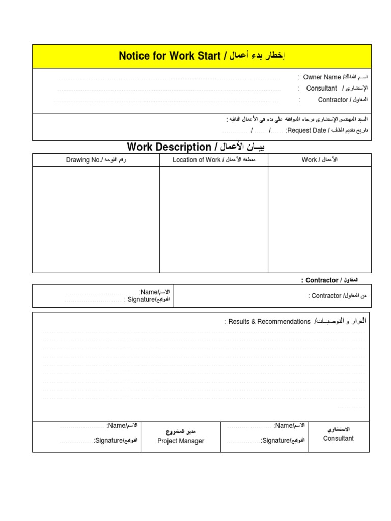 شركات المقاولات محضر تسليم موقع للمقاول Doc