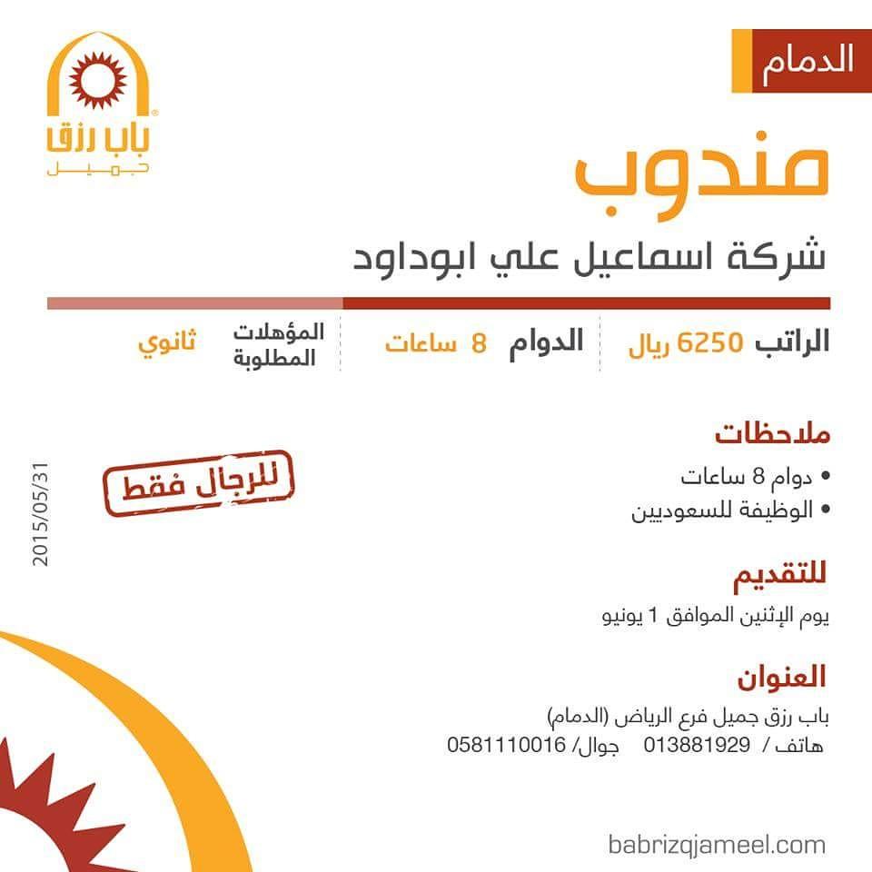 باب رزق جميل Bab Rizq Jameel V Twitter وظائف للشباب في الدمام شركة إسماعيل أبوداود توظيف وظائف شاغرة Http T Co Ok3rgn4qv2
