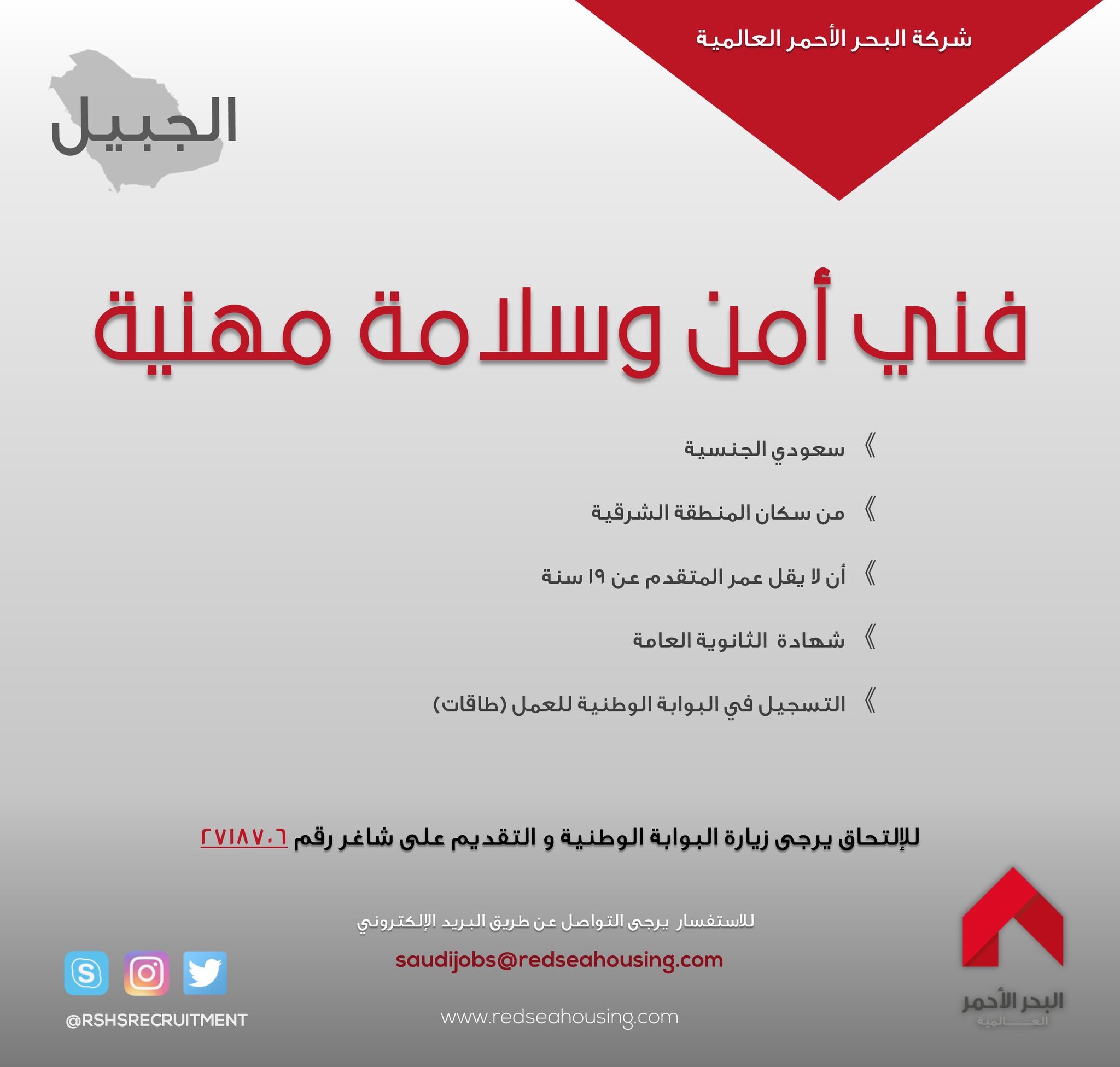 وظائف الجبيل On Twitter وظائف الجبيل شركة البحر الأحمر Rshsrecruitment تعلن عن وظيفة فني أمن وسلامة مهنية في الجبيل عبر طاقات Https T Co Wcs6cvv3nn Https T Co 7tc4gxpydz
