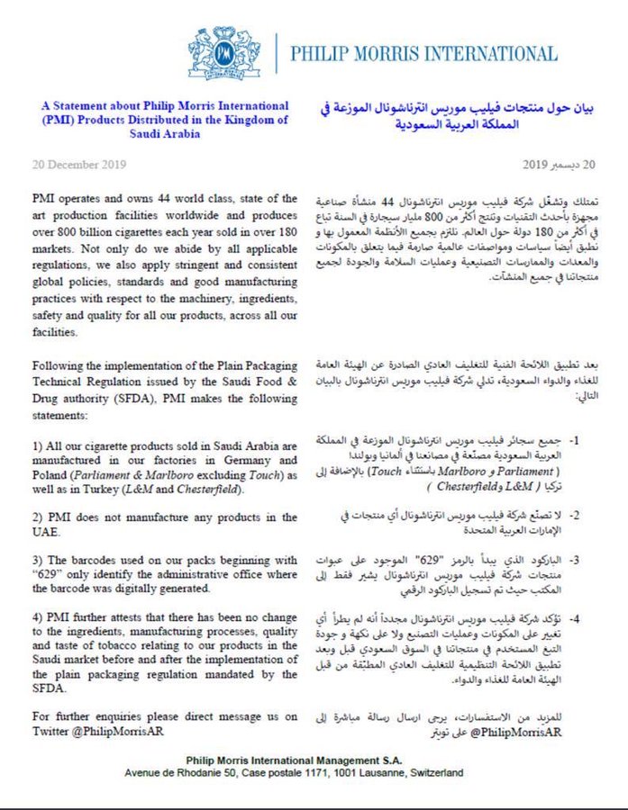 الردع السعودي 2030 A Twitteren شركة فيليب موريس لصناعة التبغ تصدر بيان يوضح التالي 1 الدخان الموجود في السعودية إما أن يكون من تركيا أو المانيا أو بولندا 2 لا