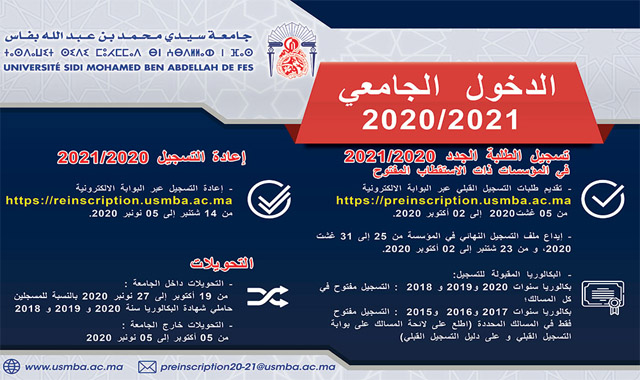جامعة سيدي محمد بن عبد الله فاس التسجيل القبلي والتسجيل بمؤسسات الجامعة برسم 2020 2021
